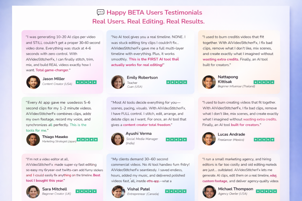 AI Video Stitcher Fx is designed for anyone who wants to create cinematic-style videos without dealing with complex editing software or time-consuming production steps. The platform is suitable for beginners who are new to video creation as well as experienced creators who want to speed up their content production workflow.