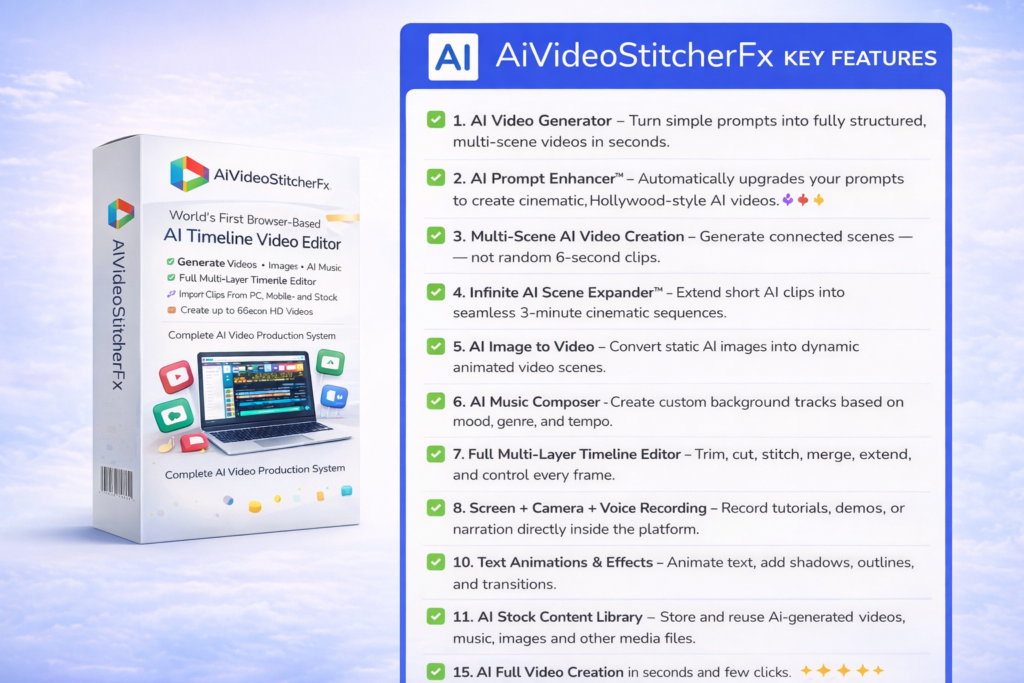 Many AI video tools focus only on generating short clips. AI Video Stitcher Fx goes further by offering a full video production workflow that includes: